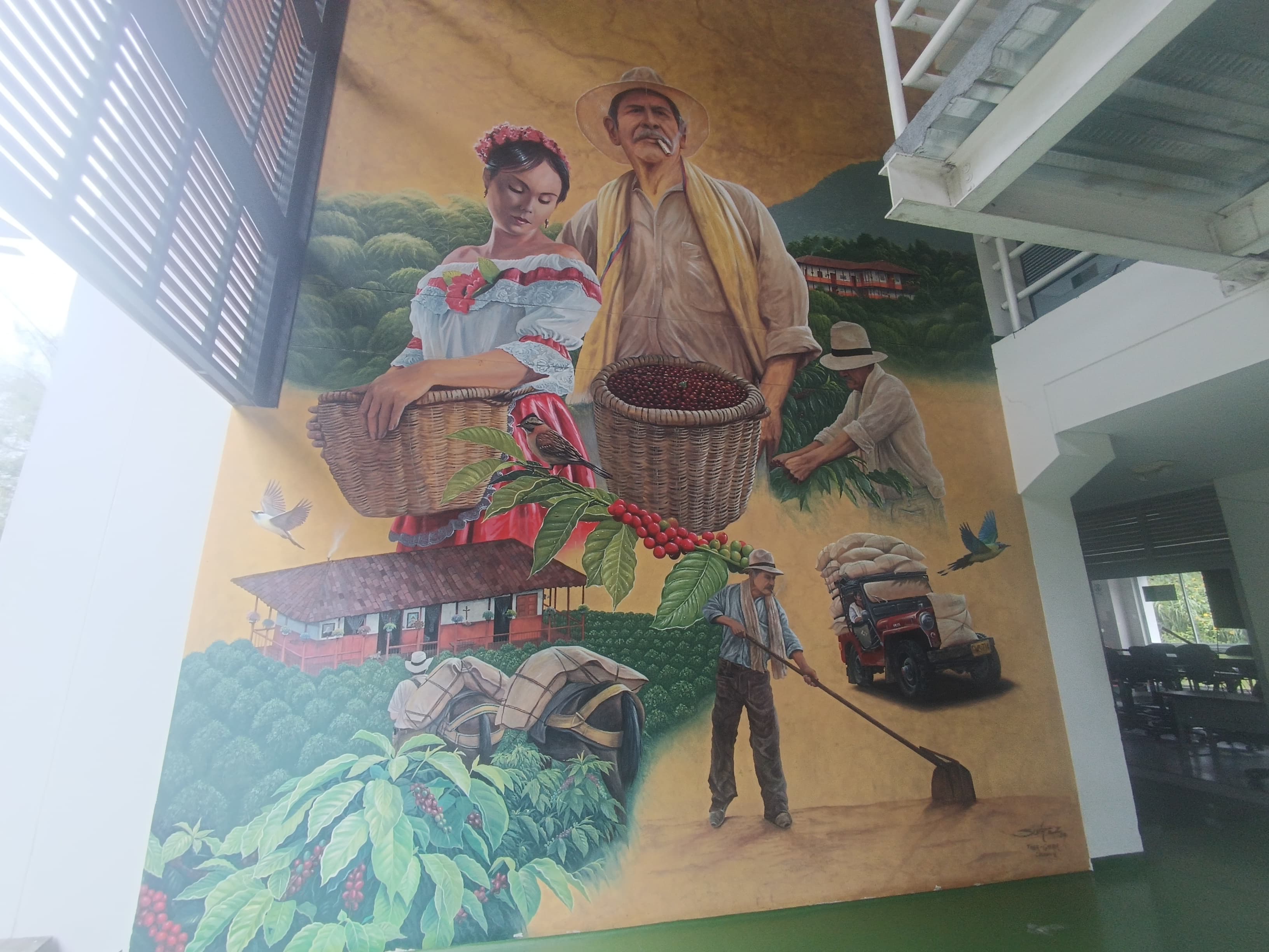 Hermoso mural del café en la Escuela Nacional de Calidad del Café en el Sena regional Quindío. Foto: Ángeles Gonzáles