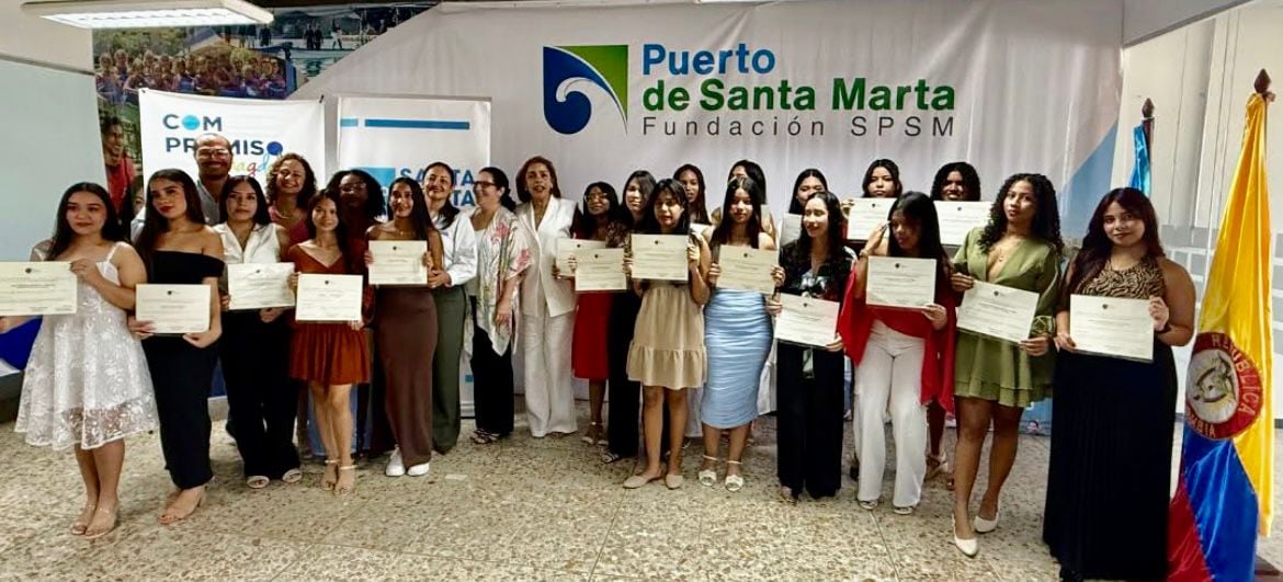 “Cuando nos unimos, como lo hemos hecho con el Distrito de Santa Marta, las entidades, el sector privado logramos resultados como el que hoy me llena de alegría y orgullo. Este grupo de 21 jóvenes hoy cuentan con una herramienta que les abre puertas en el ámbito laboral”, afirmó Yolanda Mendoza, directora de la Fundación Sociedad Portuaria.