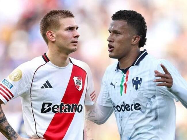 Franco Mastantuono, de River Plate en el partido con Inter, yel colombiano Nelson Deossa, en partido con Urawa / Getty Images