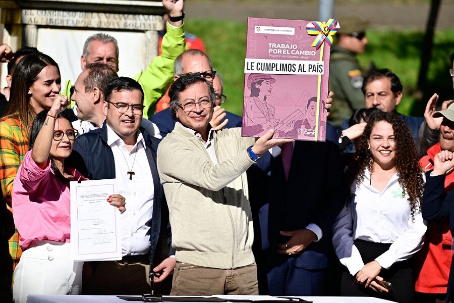 En la Casa Quinta Museo de Bolívar, en Bogotá, el Presidente Gustavo Petro sancionó la nueva ley que transforma el empleo en Colombia. Hecho en el que también se firmó la inclusión del contrato de aprendizaje Sena, con carácter laboral en esta nueva legislación. Justine Jiménez, aprendiz Sena y oriunda de Barrancabermeja fue la representante de los aprendices antes, durante y en el acto en el que se firmó esta nueva reforma.