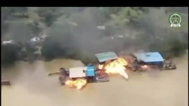 Destruyeron dragas y excavadoras del Clan del Golfo usadas para extraer oro ilegal en el Bajo Cauca