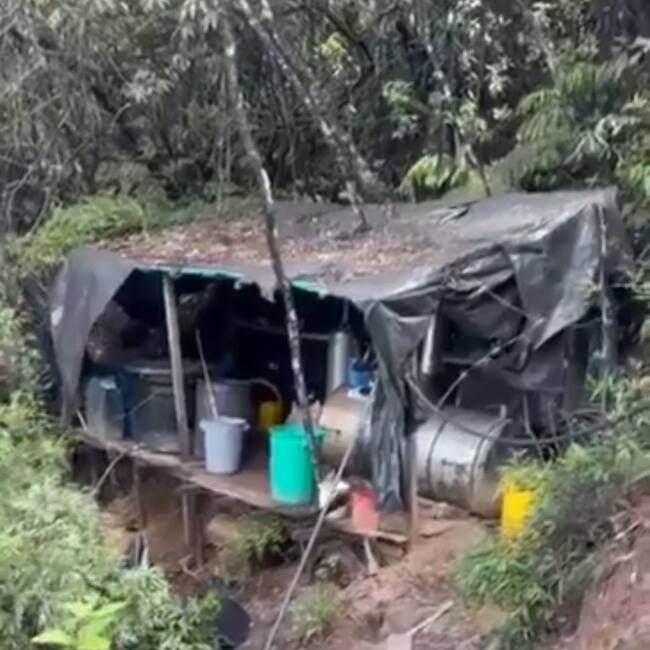Además, se hallaron seis construcciones rústicas en madera y plástico, que servían de infraestructura para la operación del laboratorio, incluyendo una zona de alojamiento equipada con 30 camarotes, neveras, lavadoras y utensilios de cocina.