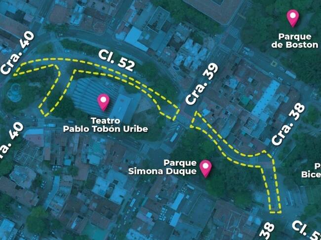 Por esta razón, desde las 8:00 de la mañana del jueves 3 de julio y hasta la 1:00 de la tarde del domingo 6, habrá cierre total en la carrera 38 entre calles 51 y 52 (La Playa), en la calle 52 entre carreras 38 y 39 (Giraldo), y en el circuito interno del Teatro Pablo Tobón Uribe. Las autoridades recomiendan tomar transporte público y evitar el uso de vehículo particular en la zona