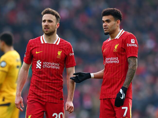 Diogo Jota y Luis Díaz, compañeros en el Liverpool. (Photo by Chris Brunskill/Fantasista/Getty Images) / Chris Brunskill/Fantasista