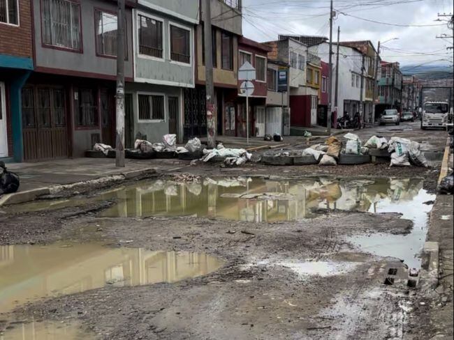 Los habitantes del barrio Jaqueline en Bogotá llevan meses con la calle llena de agua emposada, lo que ha generado consecuencias en su transporte, viviendas y negocios.
