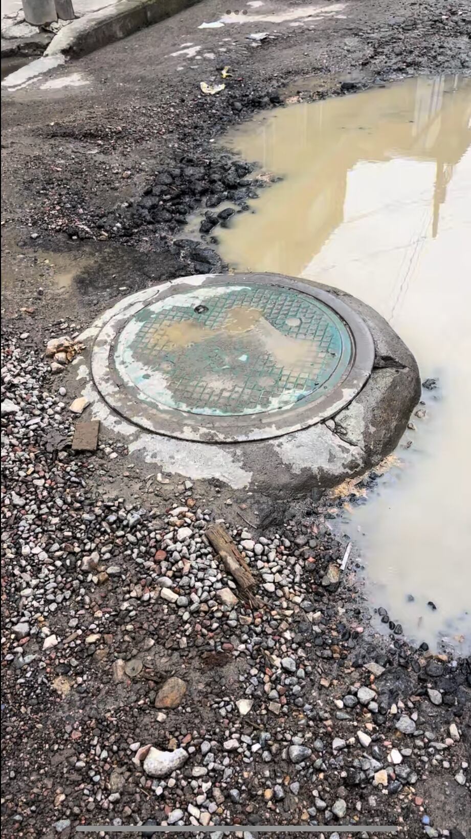 Hay una alcantarilla que preocupa también a la comunidad porque queda casi al final de la calle en una esquina por donde pasan carros.