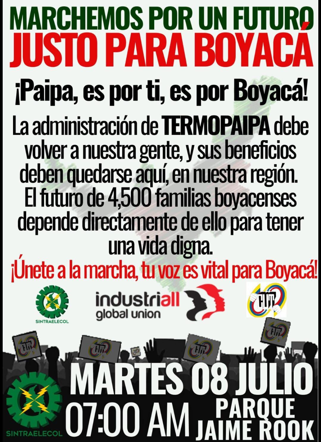 “Nosotros tenemos aún hoy la firme decisión de iniciar un paro indefinido en la BTS, pero la Gobernación de Boyacá se comprometió a hacer la gestión ante el Gobierno Nacional para que haya una comisión del Ministerio de Hacienda y Crédito Público, quien es el mayor accionista, y una comisión del Ministerio de Minas y Energía y poder iniciar unas reuniones con el fin de que se evalúen las peticiones en torno al futuro de Termopaipa, que es un renglón importante para la economía hoyacense”, agregó Rojas.