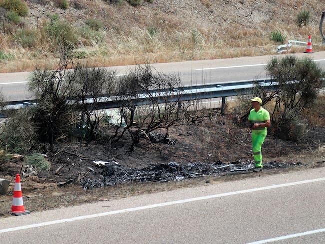CERNADILLA (ZAMORA), 03/07/2025.- Vista del lugar del accidente en el que el futbolista del Liverpool Diogo Jota, de 28 años, y su hermano André, de 26, han fallecido esta madrugada, después de que su vehículo saliera de la vía en la Autovía Rías Bajas (A-52) en Cernadilla (Zamora, España). Según informan a EFE fuentes de la investigación, los dos hermanos portugueses han muerto a bordo de un Lamborghini que, por causas que se investigan, se salió de la autovía Rías Bajas (A52) a la altura del kilómetro 65, en sentido Benavente, en torno a las 00:40 horas. EFE/Mariam A. Montesinos / Mariam A. Montesinos
