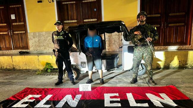 De acuerdo con la información suministrada por las autoridades, este hombre que estaría conectado con el frente Manuel Hernández El Boche del frente de guerra occidental del ELN, al mando de alias ‘Santiago’ y alias ‘Andrés o Antony’, se encontraba en el sector conocido como Puente La Unión, zona rural del corregimiento de Santa Cecilia del municipio Pueblo Rico, instalando una bandera alusiva al grupo armado, cuando fue interceptado.