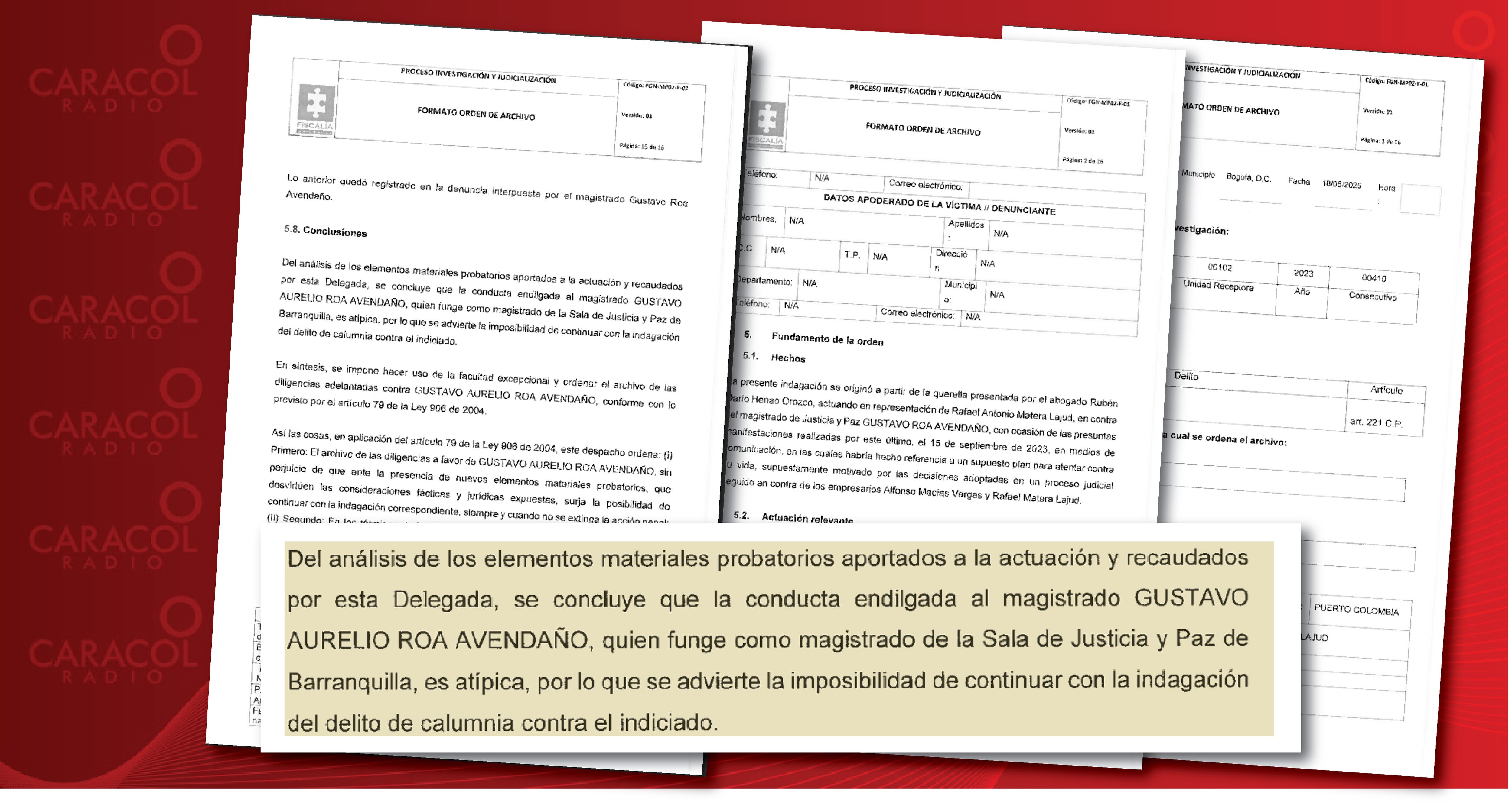 La Fiscalía archivó un proceso a Gustavo Roa Avendaño, el magistrado de Justicia y paz del Tribunal de Barranquilla, que pidió investigar a empresarios de la Costa Caribe por presunta financiación al paramilitarismo.