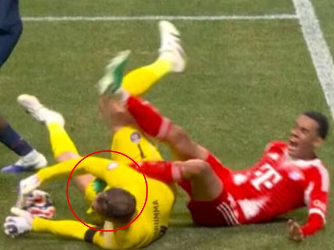 Tras un partido bastante disputado, instantes antes de finalizar el primer tiempo, una jugada inofensiva en la que el balón se dirigía al saque de puerta en favor del PSG, la joven estrella alemana, Jamal Musiala trató de interceptar el balón y se chocó con el gigante guardameta italiano, Gianluigi Donnarumma.