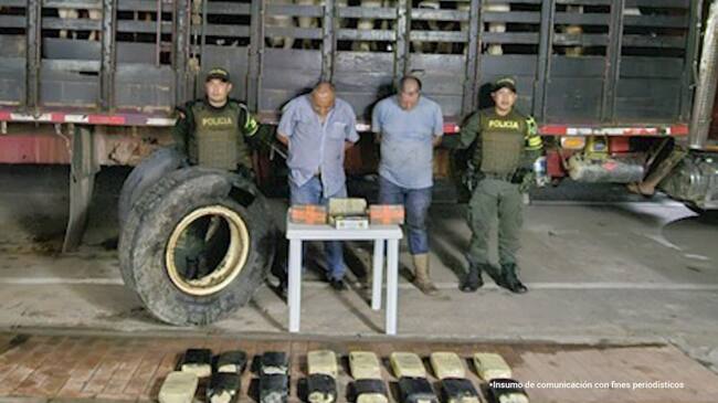 Los hechos ocurrieron en un puesto de control en la vía que conduce de Neiva, Huila al corregimiento de Castilla de Natagaima. Estos dos hombres se movilizaban en un camión con ganado. Al inspeccionar el vehículo, las autoridades hallaron en la llanta de repuesto 26 paquetes con más de 47 kilos de cocaína.