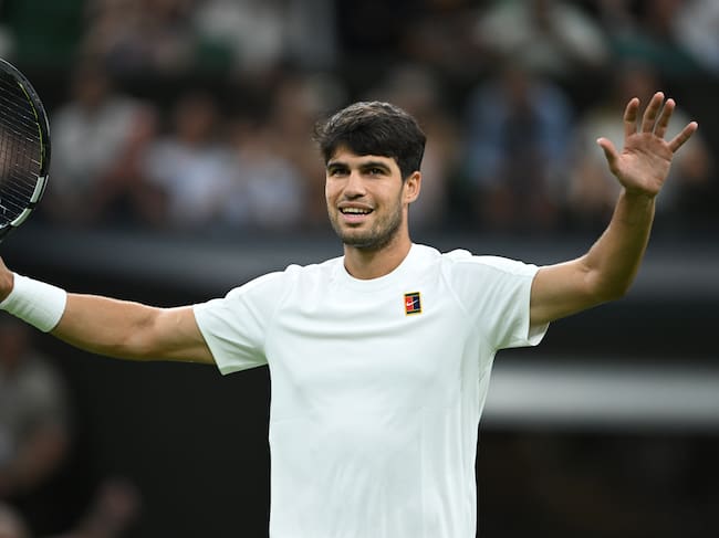 Así le fue a Carlos Alcaraz ante Rublev en Wimbledon: rompió el récord de victorias en su carrera. (Tenis, Rusia, España, Reino Unido) EFE/EPA/DANIEL HAMBURY EDITORIAL USE ONLY EDITORIAL USE ONLY / DANIEL HAMBURY (EFE)