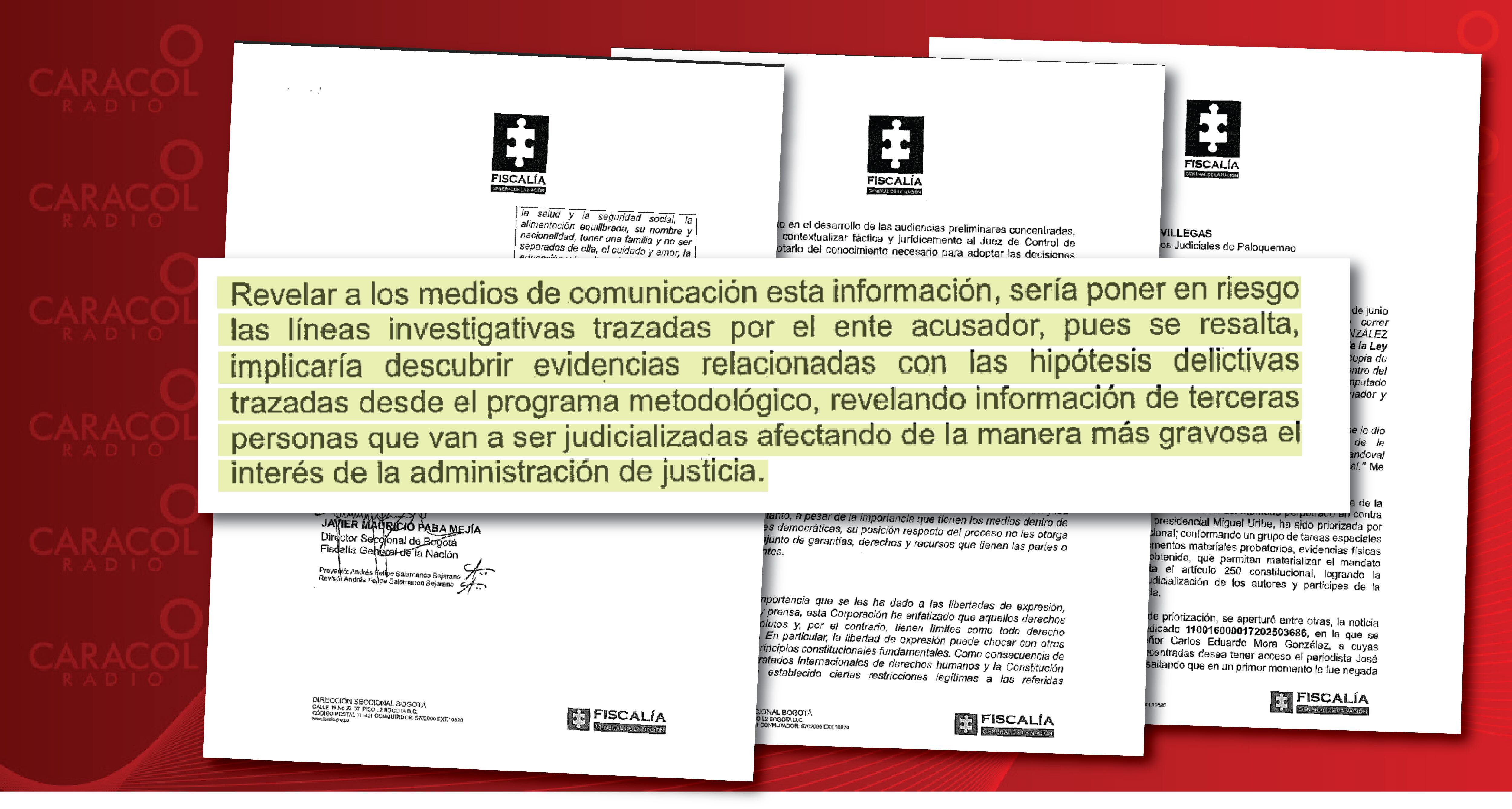 “Revelar a los medios de comunicación esta información, sería poner en riesgo las líneas investigativas trazadas por el ente acusador, pues se resalta, implicaría descubrir evidencias relacionadas con las hipótesis delictivas trazadas desde el programa metodológico, revelando información de terceras personas que van a ser judicializadas afectando de la manera más gravosa el interés de la administración de justicia”, indica el documento.