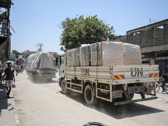 Camiones de la ONU con ayuda humanitaria en Franja de Gaza. FOTO: Dawoud Abo Alkas/Anadolu via Getty Images / Anadolu