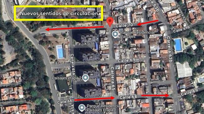 El análisis técnico evidenció un mayor uso de la calle 70 para ingresar al sector de Paisajes y de la calle 68 como vía de salida hacia la carrera 65B. A pesar de su diferente clasificación en el Plan de Ordenamiento Territorial, ambas comparten características físicas similares.