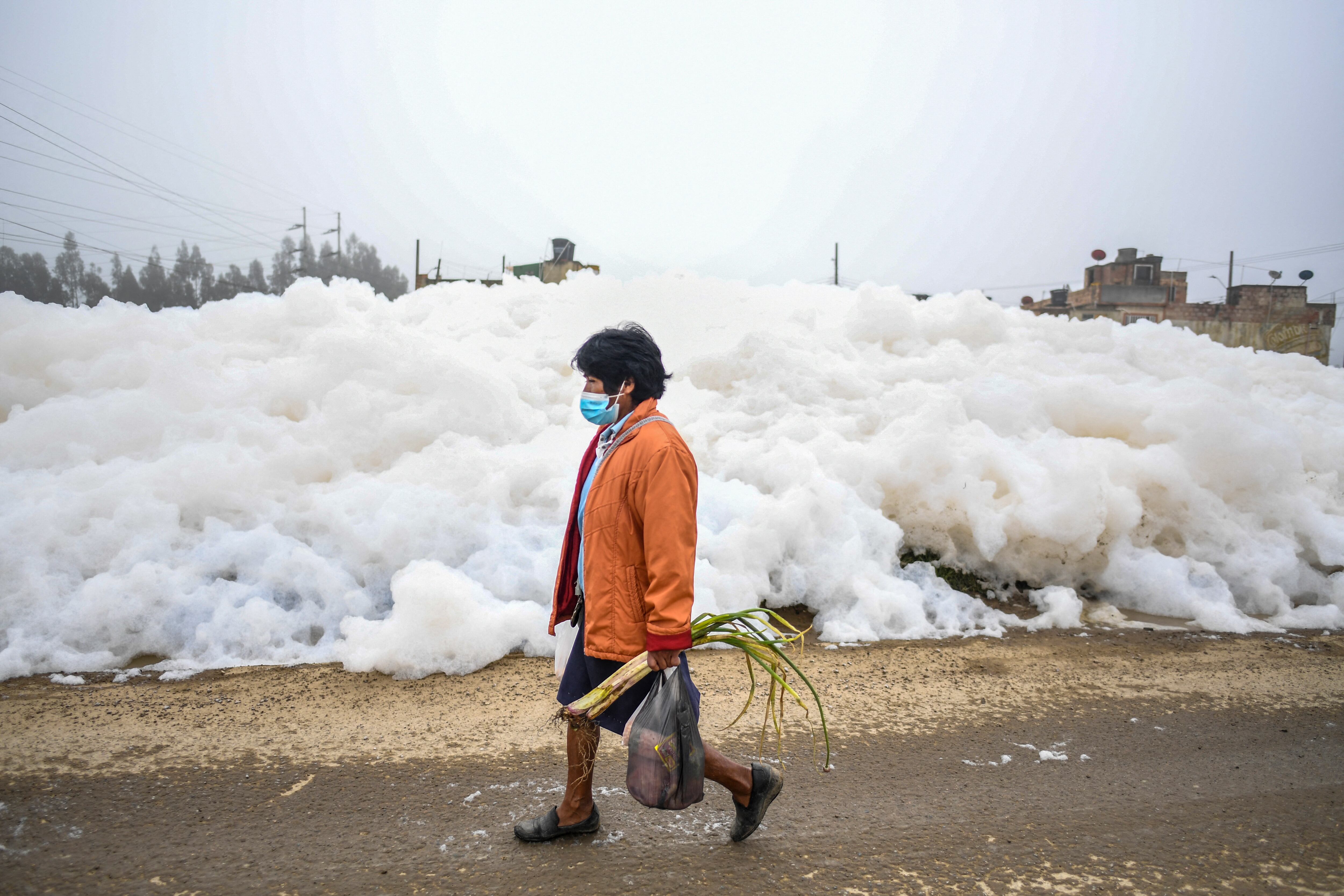 Espuma de aguas contaminadas en el barrio Los Puentes, en Mosquera (Colombia). (Foto: JUAN BARRETO/AFP via Getty Images) / JUAN BARRETO