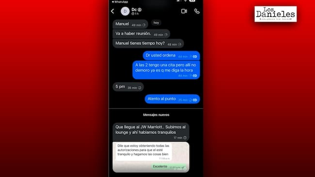 –Que llegue al JW Marriot… Subimos al lounge y ahí hablamos tranquilo –escribe Cadena encima de un mensaje que ustedes pueden ver donde se lee: “Dile que estoy obteniendo todas las autorizaciones para que él esté tranquilo y hagamos las cosas bien”.