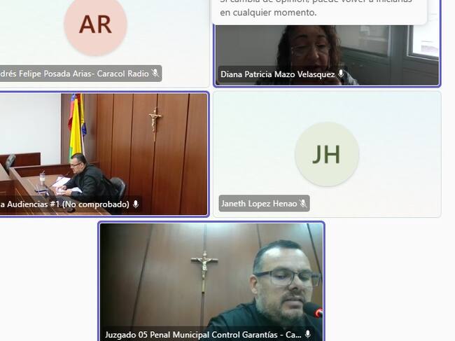 Foto pantallazo audiencia de legalización de captura por delito de secuestro en Manizales