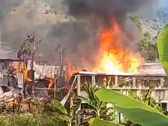 30 Viviendas construidas en madera consumidas por un incendio en zona rural de Calarcá, Quindío