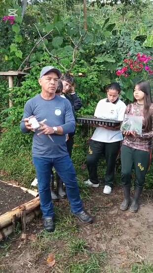 Hemos venido trabajando sobre todo con acompañamiento técnico con Genaro, el ingeniero Genaro y la idea que nosotros hemos tenido siempre es que nuestros estudiantes no solo produzcan por producir, sino que aprendan en un futuro a hacer transformación del alimento y a comercializarlo, la idea siempre es que, si ellos son del campo, trabajen por el campo y vean que es un es valioso tener tierra.