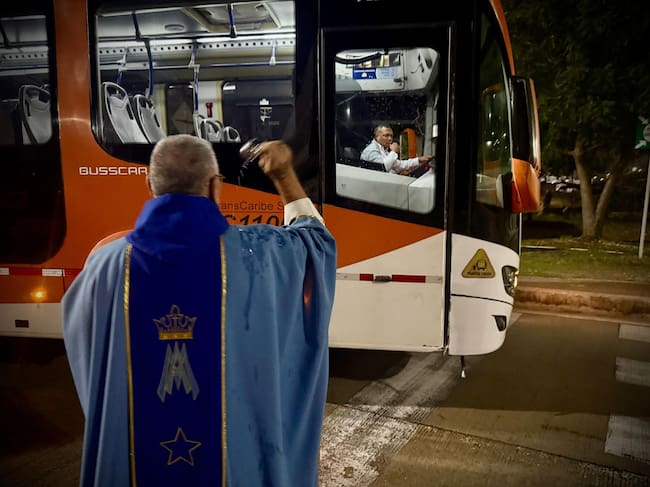 Con profunda devoción, operadores del sistema de los cartageneros recibieron la bendición antes de iniciar sus labores, en la madrugada de este miércoles. La celebración de esta fecha busca resaltar la labor de los conductores, dignificar su oficio y fomentar su capacitación en seguridad vial.