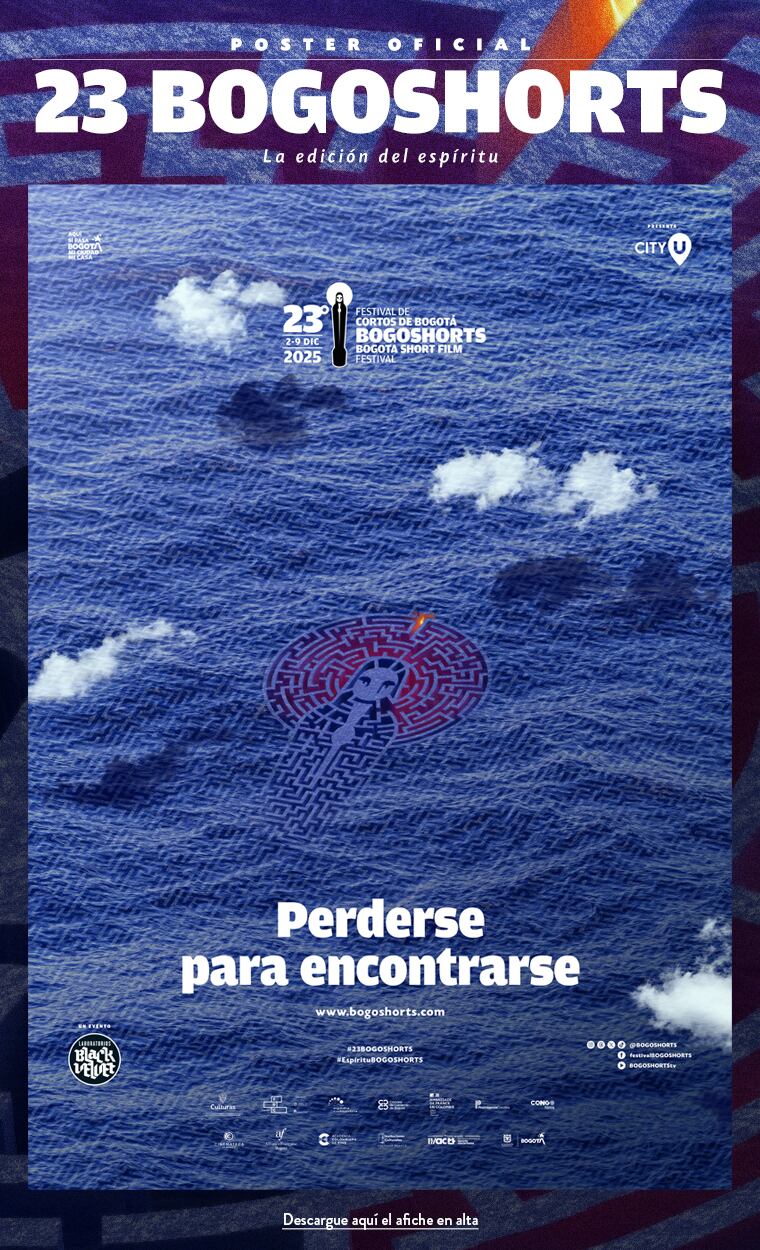 El Festival de Cortos de Bogotá o Bogoshorts, ha presentado en el marco del BAM el poster que lucirá este 2025. Después de habitar la piel en la edición 21 (#CuerposBOGOSHORTS) y sumergirse en los caminos de la mente en la edición 22 (#BOGOSHORTSenMENTE), este año hace referencia a una dimensión más sutil, más misteriosa y, quizás, más esencial: el espíritu. Ese núcleo invisible que nos mueve, que no se ve ni se toca, pero que nunca deja de buscar.