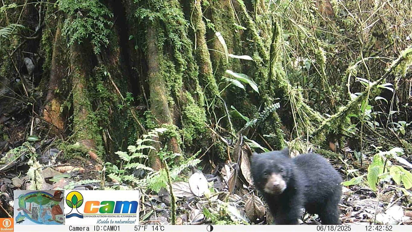 Una osa de anteojos con su cría, de aproximadamente cinco meses de edad, fue registrada por cámaras trampa del recién conformado grupo de monitoreo “Kwes Uma Kiwe The´Gutha´W” (Protectores de la Madre Tierra) del municipio de La Plata. Este registro se constituye en el primer reporte para el occidente del Huila, que evidencia que los osos andinos se están reproduciendo en esta zona del departamento y fue obtenido por medio del trabajo comunitario apoyado por la Corporación Autónoma Regional del Alto Magdalena.