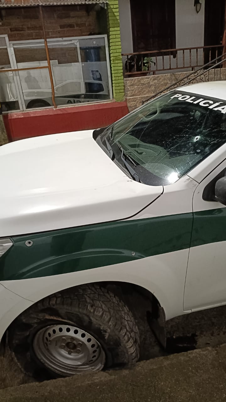 Dos uniformados resultaron ilesos, pese a los múltiples impactos recibidos por la patrulla.