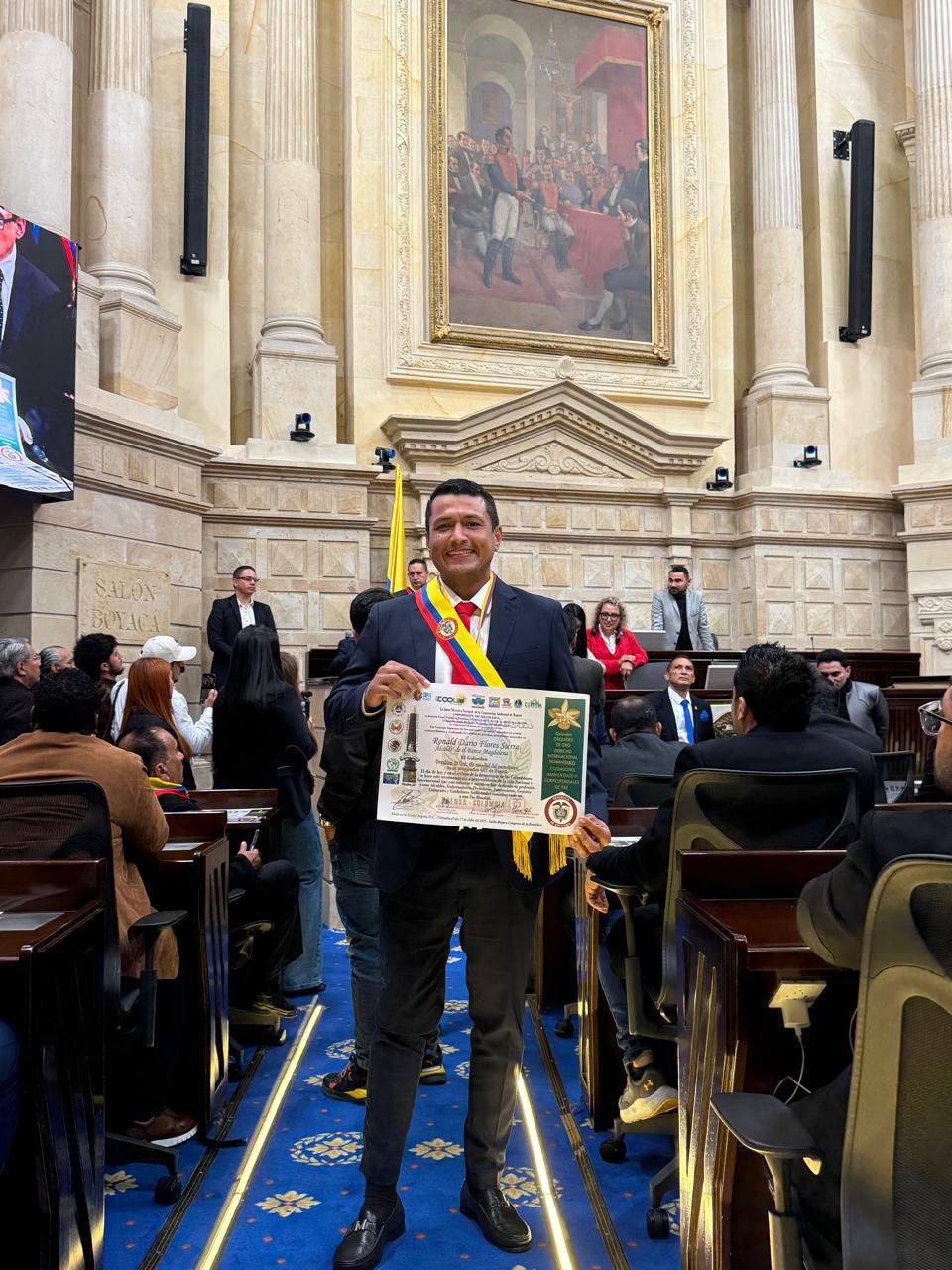 El acto de entrega tuvo lugar en el Salón Boyacá del Capitolio Nacional, un espacio emblemático donde se reconocen causas y liderazgos destacados a nivel nacional.