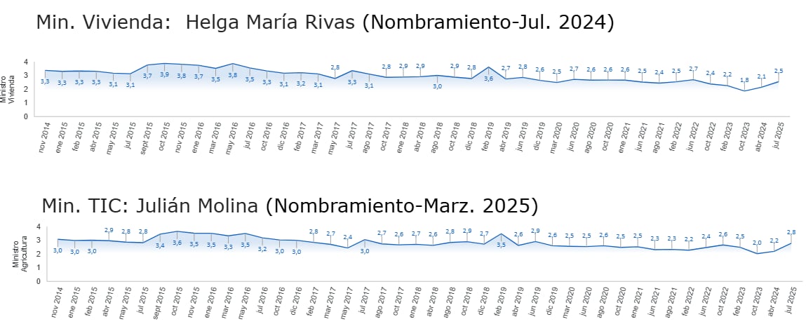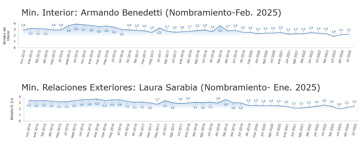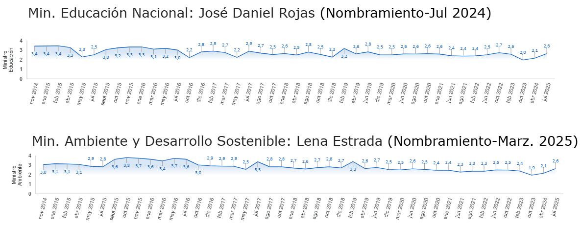 Entre tanto, los peor calificados fueron MinInterior con 2,2 y MinIgualdad con 2,3.