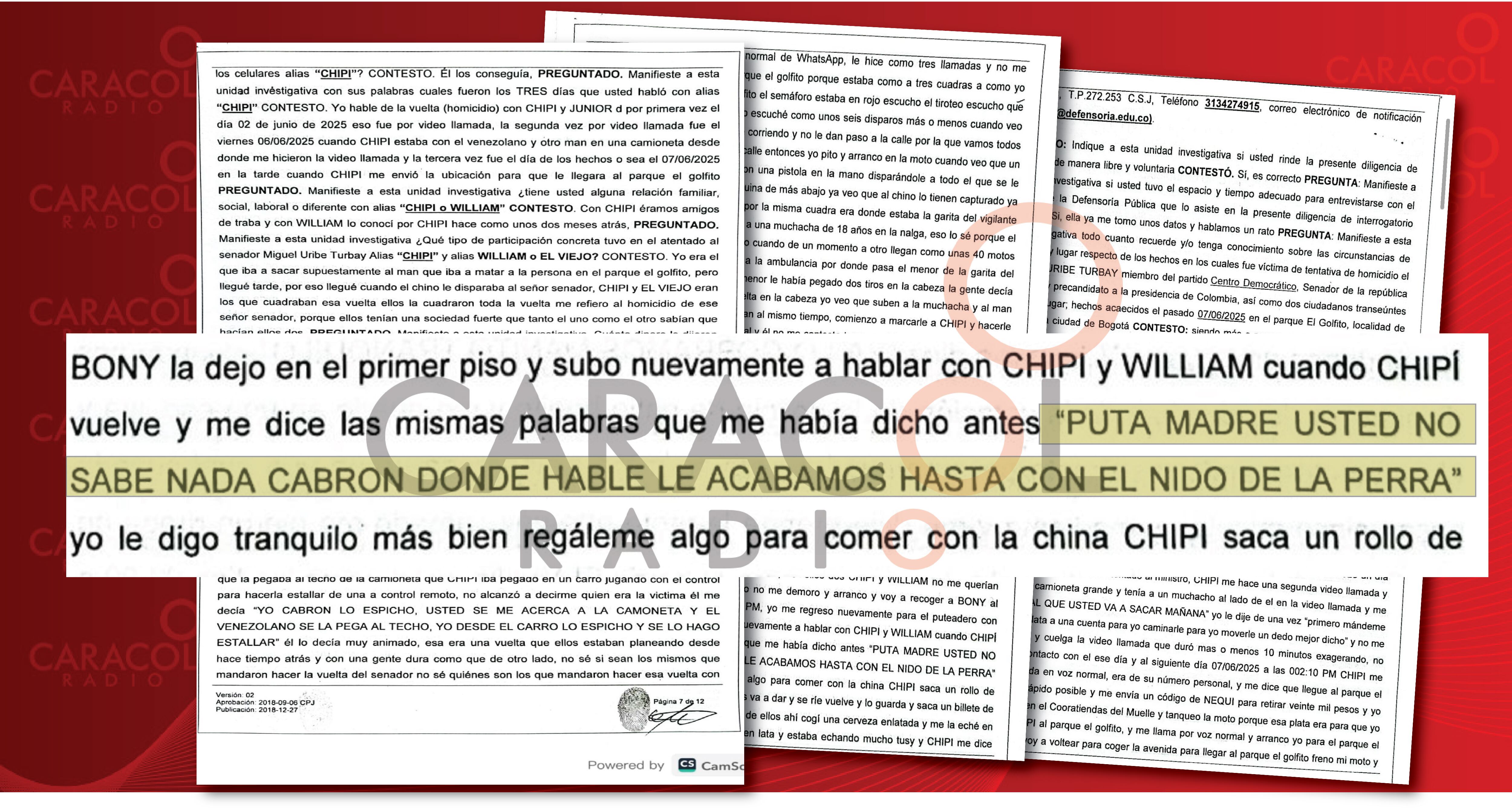 Caracol Radio conoció el interrogatorio que rindió ante la Fiscalía Cristian Camilo González Ardila, el sexto implicado en el atentado contra el senador Miguel Uribe Turbay.