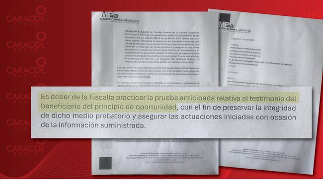 Pidió a la Fiscalía la practica anticipada del testimonio de María Alejandra Benavides. Hoy está previsto que la Fiscalía presente ante un juez el principio de oportunidad en favor de la hoy testigo