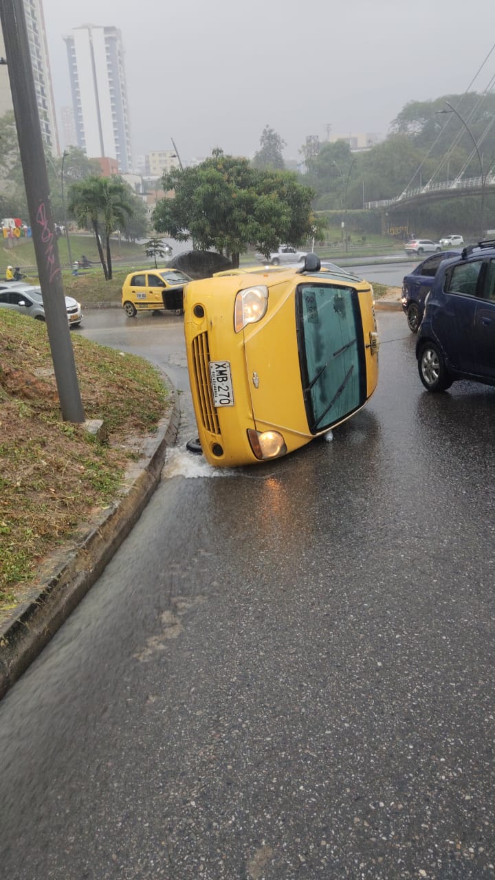 En el sector conocido como Papi Quiero Piña un taxi perdió el control y se volcó en medio de las emergencias que se registraron.