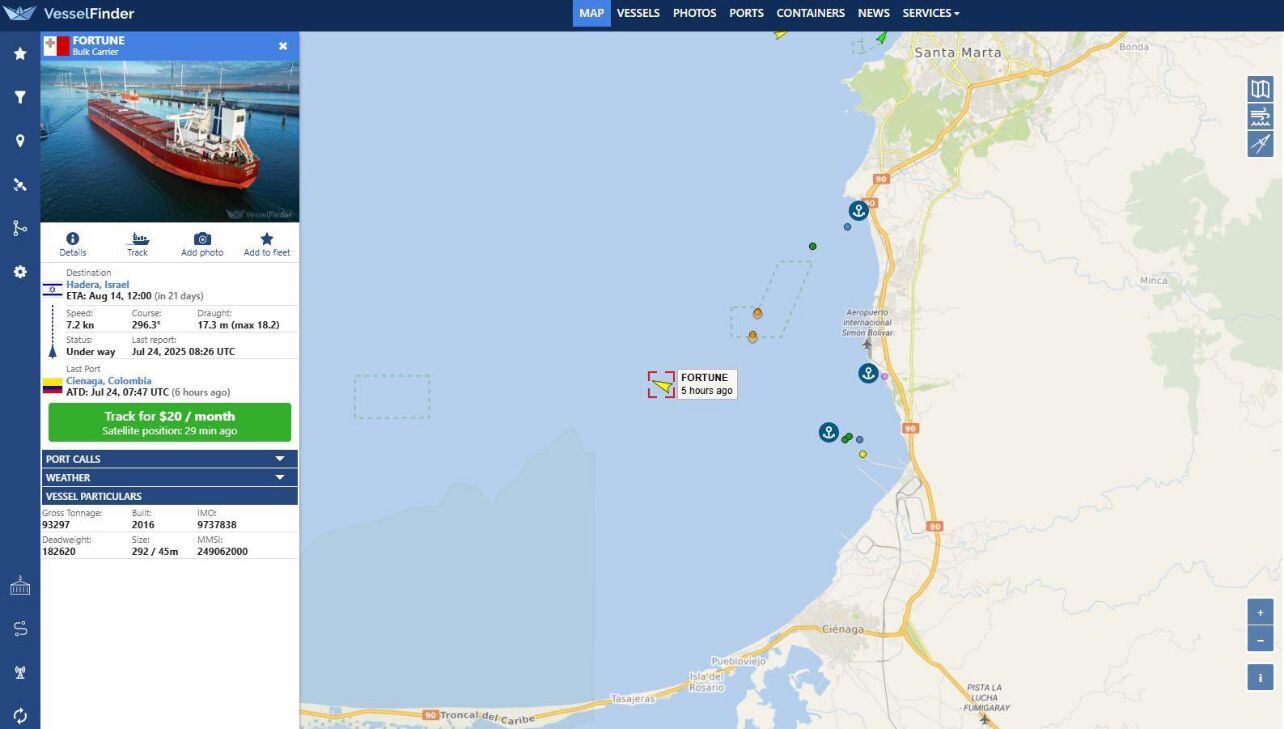 El Ministro de Trabajo Antonio Sanguino reveló que recibió una denuncia alertando la salida de un Buque Fortune con Carbón desde Puerto Nuevo en Ciénaga - Magdalena, con destino a Hadera, Israel, a las 7:47 de la mañana de este jueves.