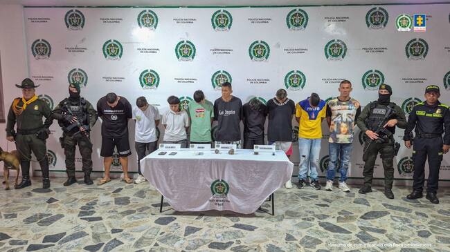 Durante el desarrollo de seis diligencias de allanamiento y registro, servidores de la Sijin de la Policía capturaron a Luis Diego Aragón Lozano, Jhon Deivi Vásquez Rivera, Jimmy Alexander Tapiero Santofimio, Wilber Stiven Garibello Ramos, Shirley Yarithd Fernando Rengifo Bolívar, Diego Fernando Rubio Porras, Carlos Andrés Huerfia Alfonzo, Cristian Camilo León Sánchez, Brayan Estiven Tapiero Santofimio y Jonhatan Saavedra Guiza.