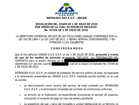 A pesar de esta obligación legal, Interaseo habría informado a los conjuntos que no recogería más residuos de los usuarios vinculados a IGNIKO, ni siquiera de los que siguen siendo suscriptores actuales, generando inconformidad entre la comunidad. Para los afectados, esto representa una aparente persecución a los usuarios que optaron por cambiar de operador, afectando indirectamente a quienes aún permanecen con la empresa paisa.