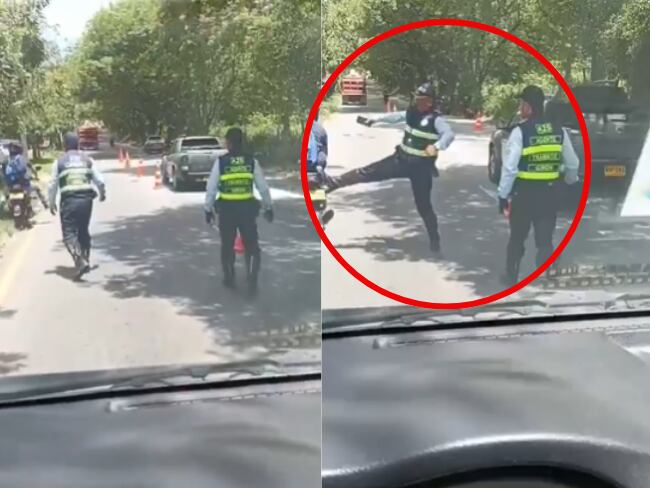 Según se puede observar en el video, uno de los funcionarios de tránsito ordena al motociclista detenerse, sin que este responda positivamente y ante la negativa del ciudadano, el agente reaccionó de manera agresiva, propinando una patada a la motocicleta que estaba en movimiento.