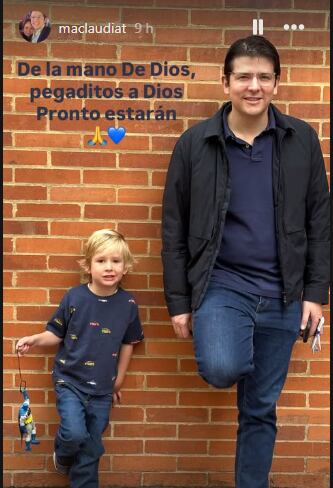 Así las cosas, este jueves, María Claudia Tarazona publicó una imagen conmovedora en Instagram del precandidato presidencial junto a su pequeño hijo y escribió: “De a mano de Dios, pegaditos a Dios pronto estarán (juntos)”.