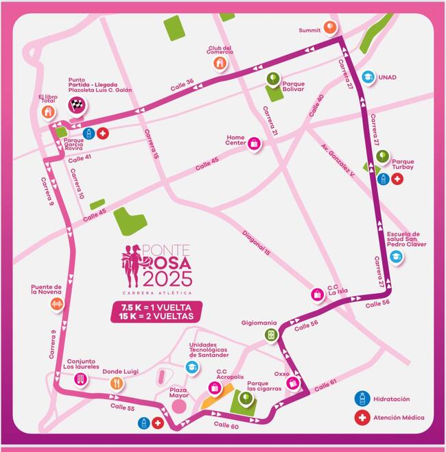 Mónica Hernández, vocera de la carrera Ponte Rosa, menciona: “La carrera iniciará a las 6:00 a.m y se espera que estos cierres viales duren hasta las 9:00 a.m., en las zonas residenciales habrá cierres intermitentes”.