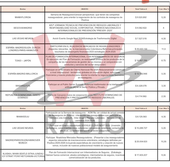 Cada viaje oficial ha sido autorizado conforme a los lineamientos de la Presidencia de la República y está directamente vinculado a actividades misionales de la compañía. En todos los casos, la participación se ha orientado al fortalecimiento técnico, comercial e institucional de Positiva, en el marco de su estrategia de internacionalización y mejora continua.