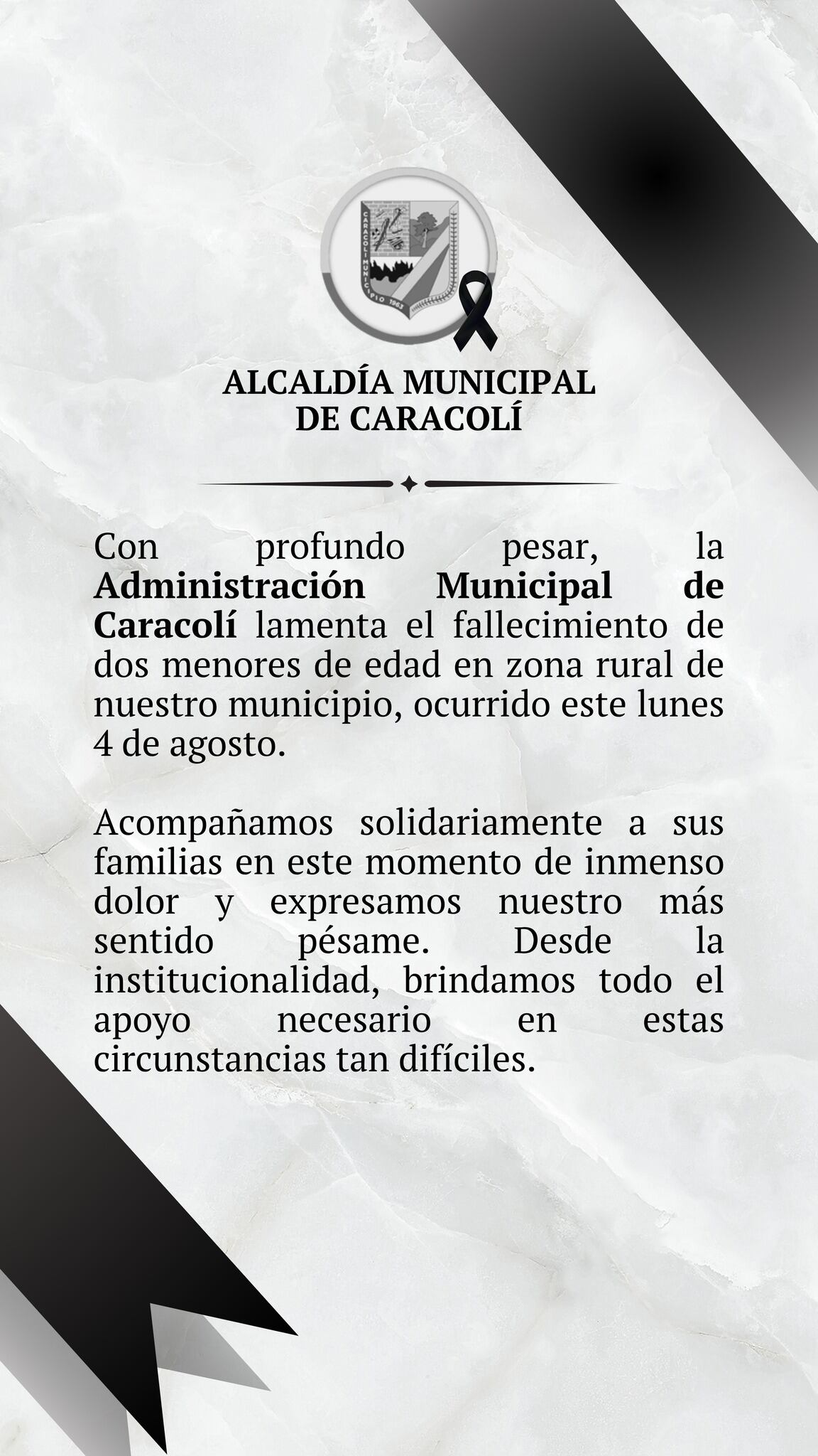 La alcaldía de Caracolí también indicó que de inmediato se dispuso de un equipo sicosocial para acompañar a las familias de los dos menores que atraviesan por esta difícil situación.