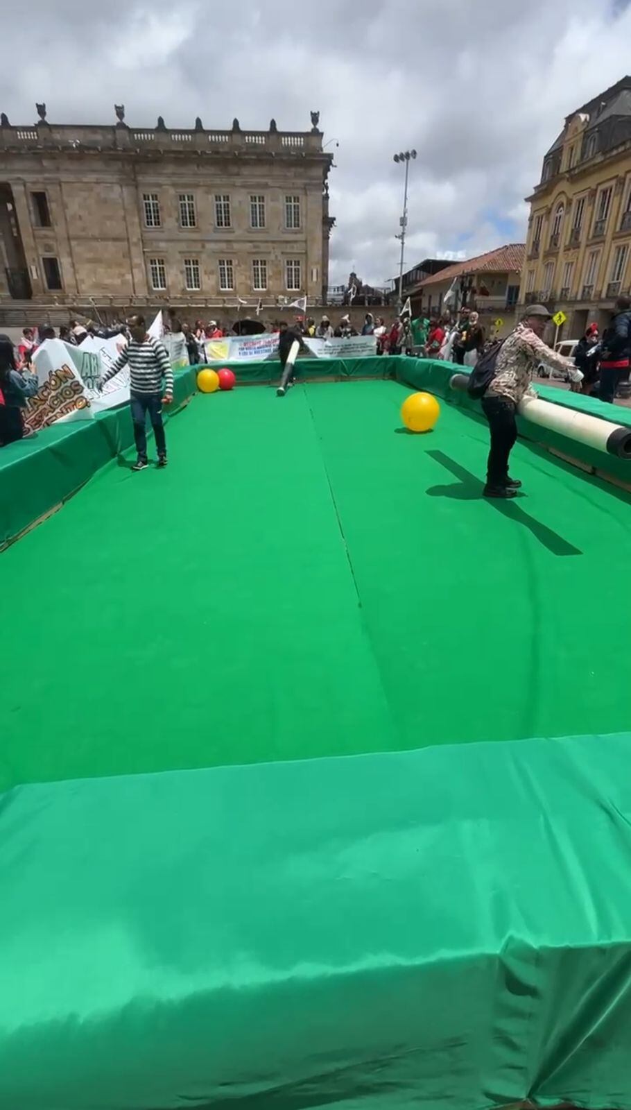 Gran mesa de billar en la Plaza de Bolívar: así protestaron billaristas de Bogotá