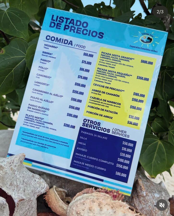 Así las cosas, por ejemplo, una bandeja con mojarra costará 55.000 pesos, una langosta 255.000, cazuela de mariscos 150.000 pesos, una porción de arroz 30.000 y una limonada 50.000 pesos.
