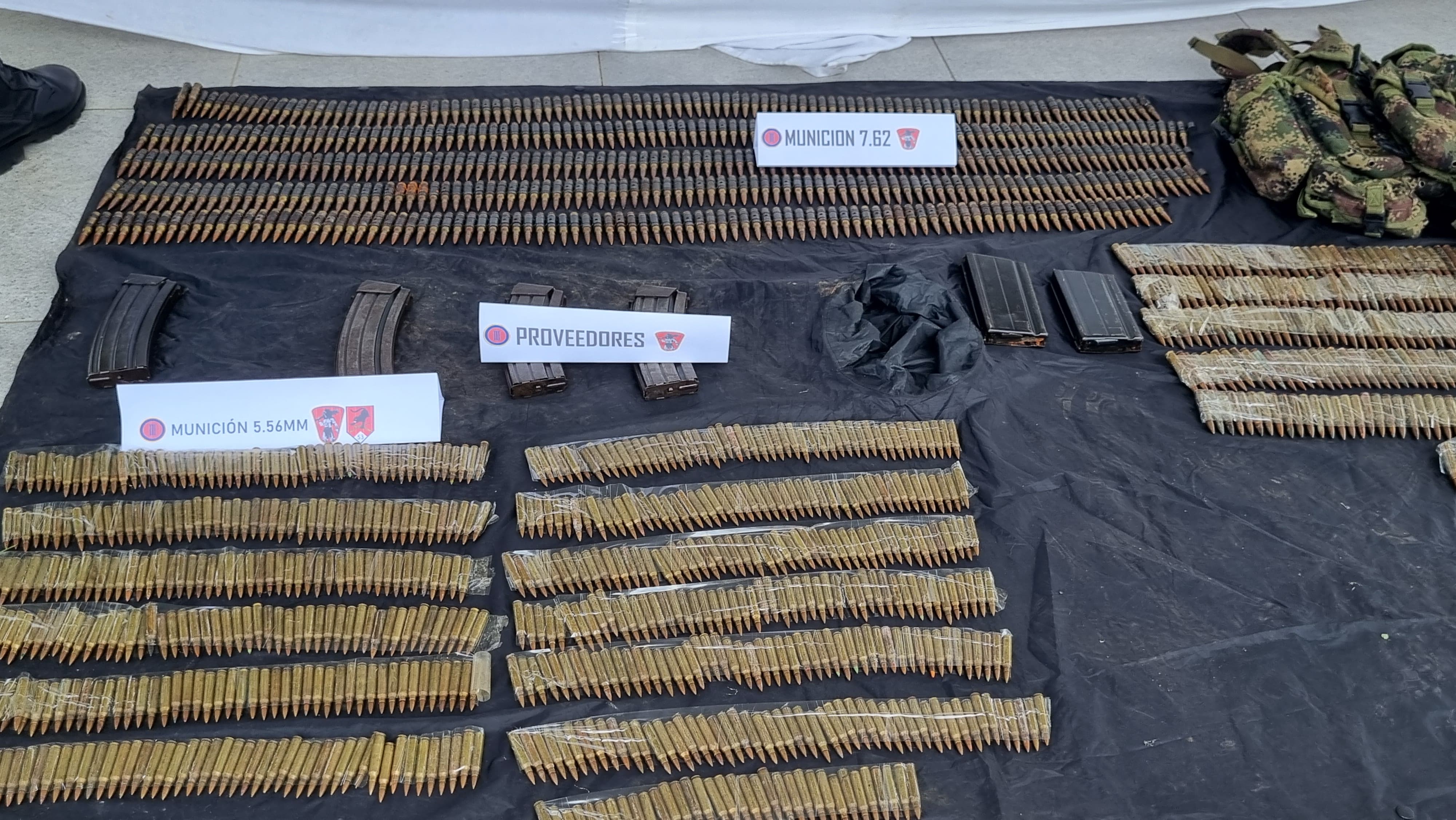 En el lugar fueron hallados nueve fusiles de asalto: cinco FAL calibre 7.62 mm, tres Bushmaster calibre 5.56 mm y un Galil del mismo calibre. Además, se incautaron más de 1.300 cartuchos, incluyendo munición eslabonada para ametralladora, así como varios proveedores listos para el combate.
