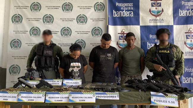 De manera oportuna, las tropas ejecutaron maniobras tácticas de reacción y contención en legítima defensa, protegiendo la vida de los uniformados y neutralizando la amenaza. Gracias a esta acción, se logró la captura en flagrancia de tres individuos conocidos con los alias de ‘Sebastián’, ‘Candelario’ y ‘María’, señalados por los delitos de tráfico, porte de armas de fuego y municiones de uso privativo de las Fuerzas Militares.