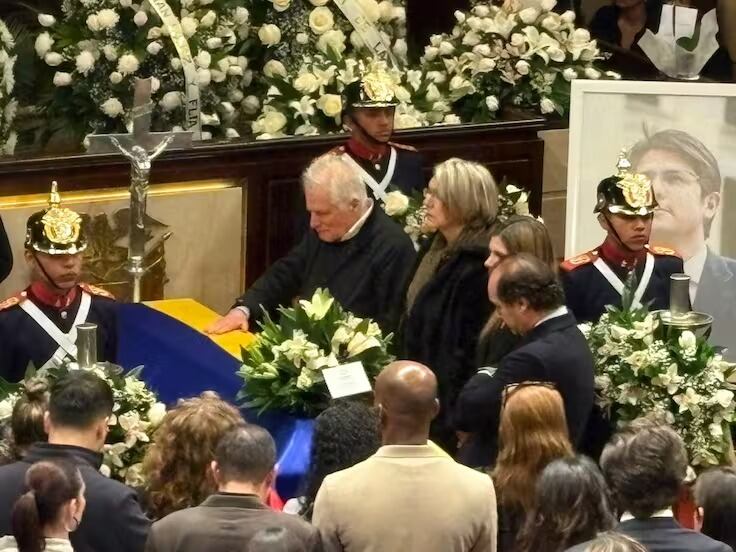 En cámara ardiente es velado el cuerpo sin vida de Miguel Uribe, su padre al lado del féretro de su hijo. Foto: Cortesía WRadio
