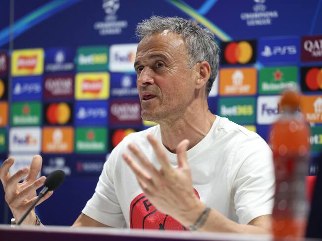 London (United Kingdom), 28/04/2025.- PSG head coach Luis Enrique attends a press conference at Emirates Stadium in London, Britain, 28 April 2025. Paris Saint Germain will face Arsenal in the UEFA Champions League semi-finals 1st leg soccer match on 29 April 2025. (Liga de Campeones, Reino Unido, Londres) EFE/EPA/NEIL HALL