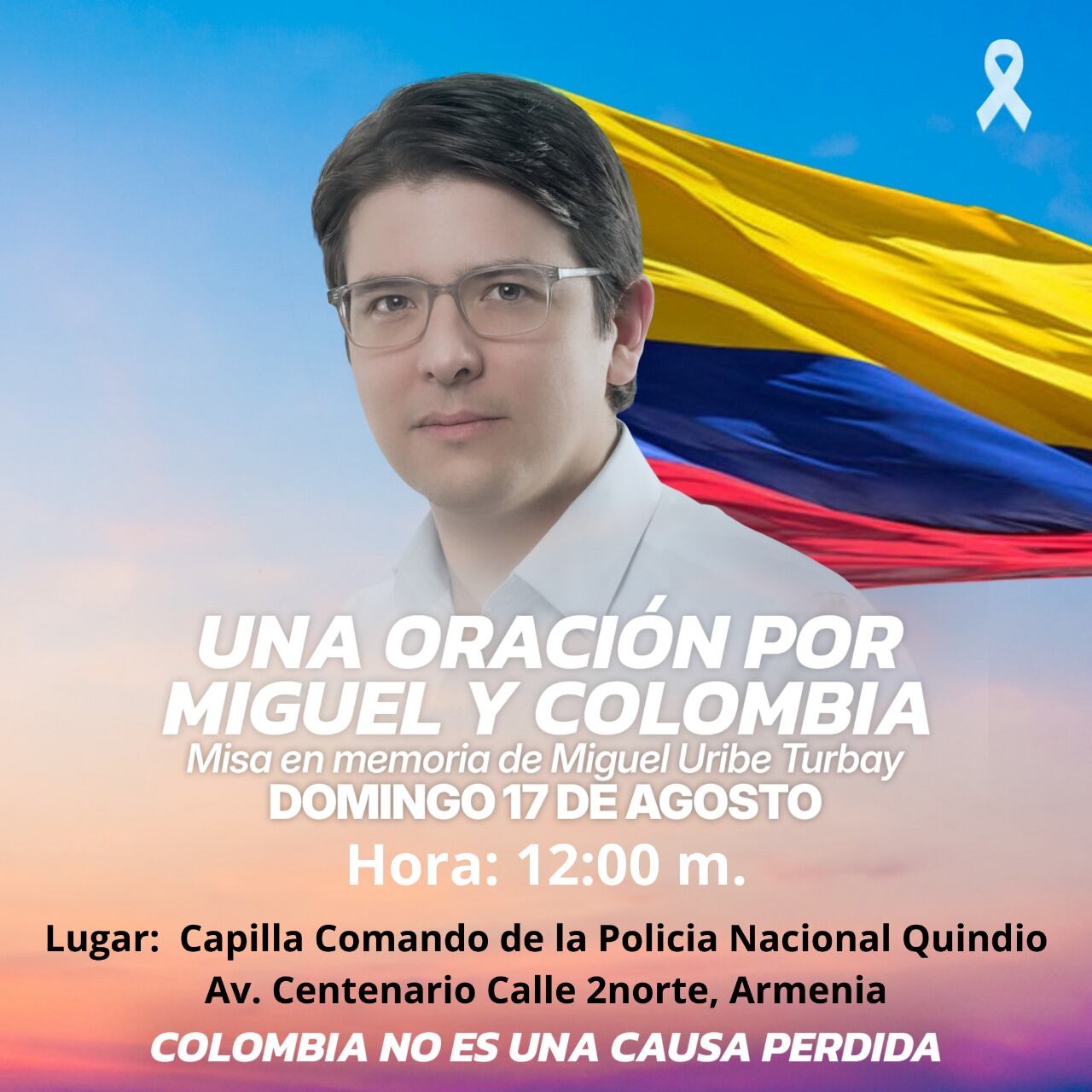El acto denominado “Una oración por Miguel y Colombia” se llevará a cabo a las 12 del mediodía en la parroquia María Reina ubicada en el comando de la Policía, Quindío en la Avenida Centenario al norte de Armenia.