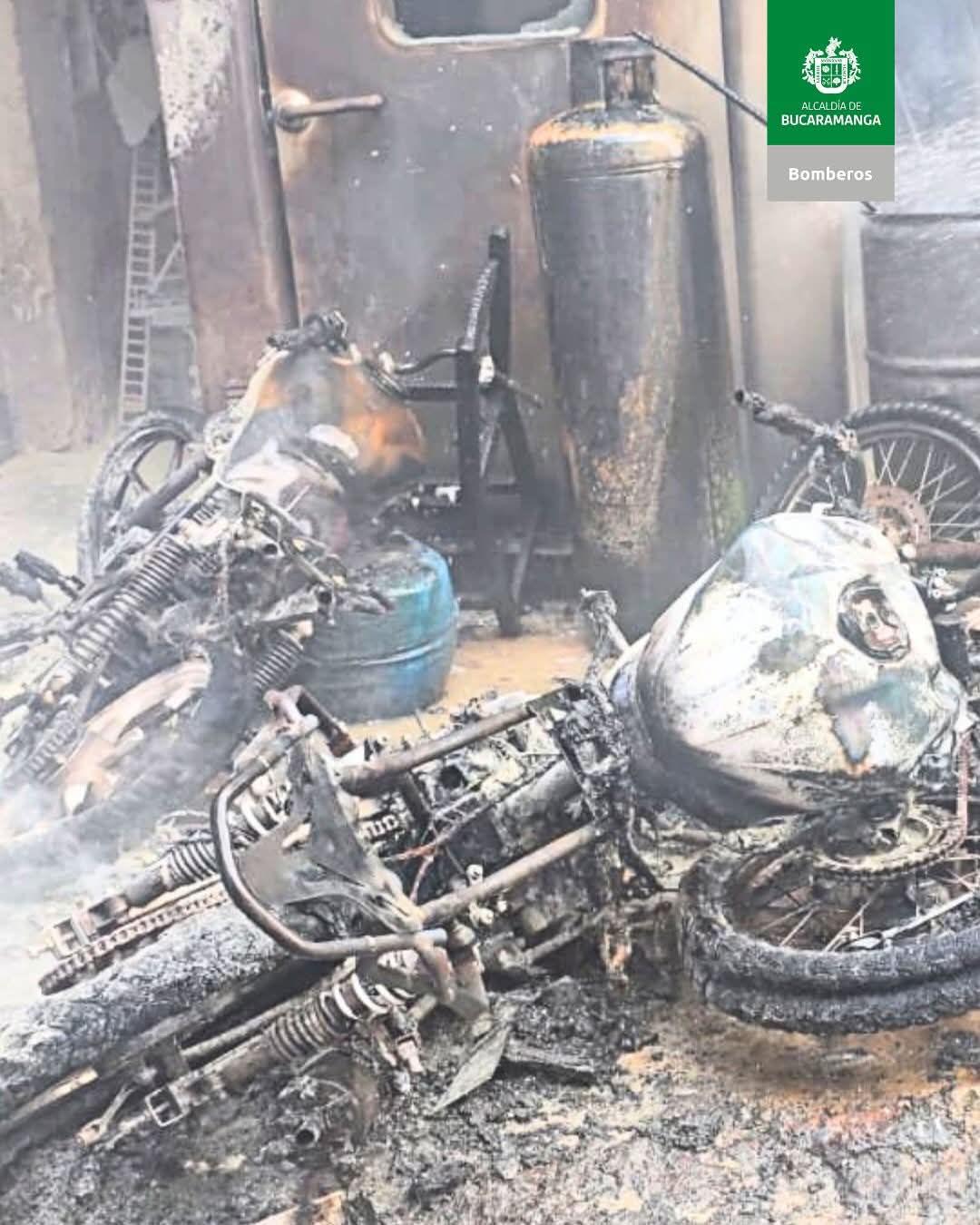 Incendio en taller de Bucaramanga: dos personas resultaron heridas y tres motos quemadas